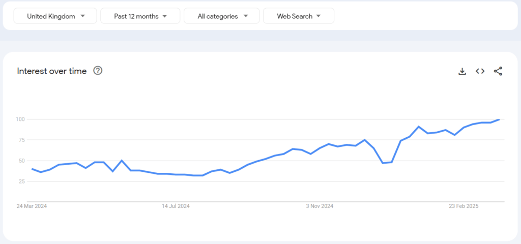 Google Trends. (2025). Search interest in ChatGPT in the UK over the past year. Retrieved March 26, 2025, from https://trends.google.com.